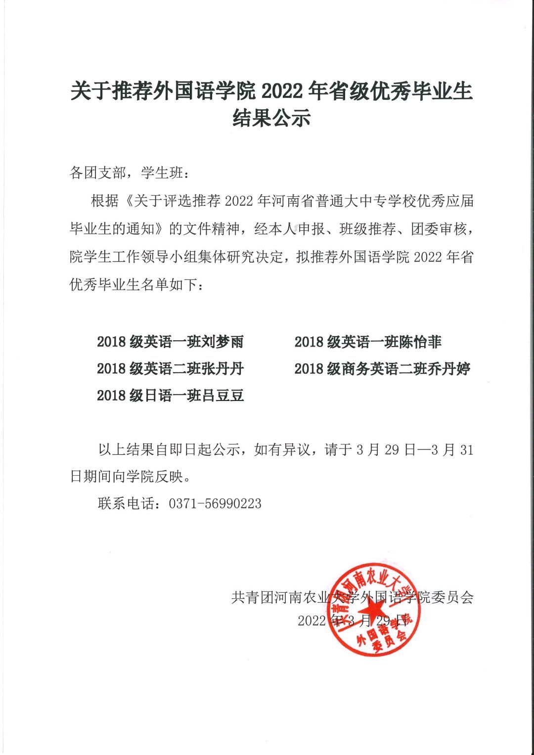 关于推荐性爱网 2022年省级优秀毕业生结果公示