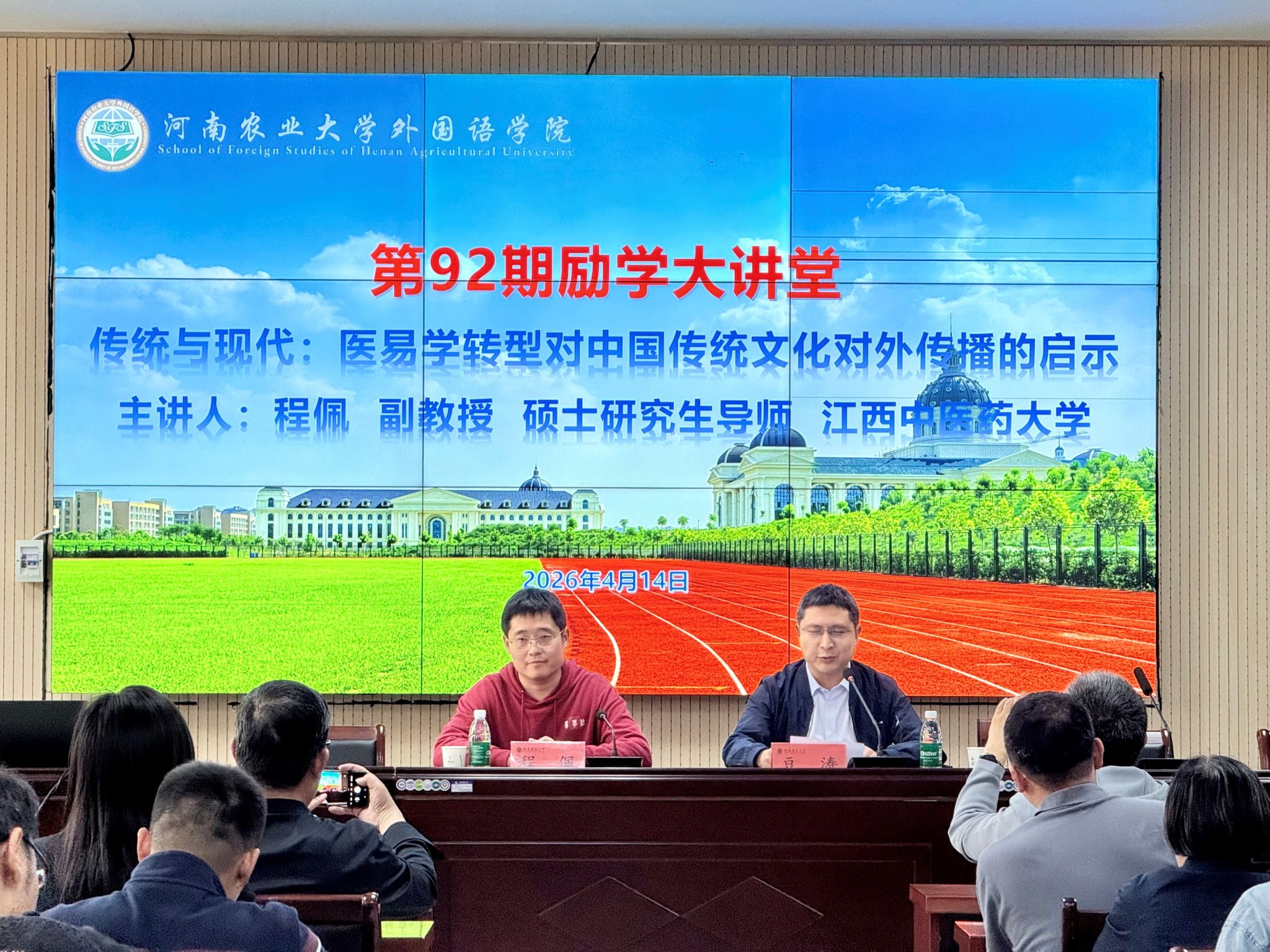 第92期“励学大讲堂”,并作了题为“传统与现代:医易学转型对中国传统文化对外传播的启示”的学术报告。报告会由副院长豆涛主持,学院骨干教师、研究生及本科生代表参加。