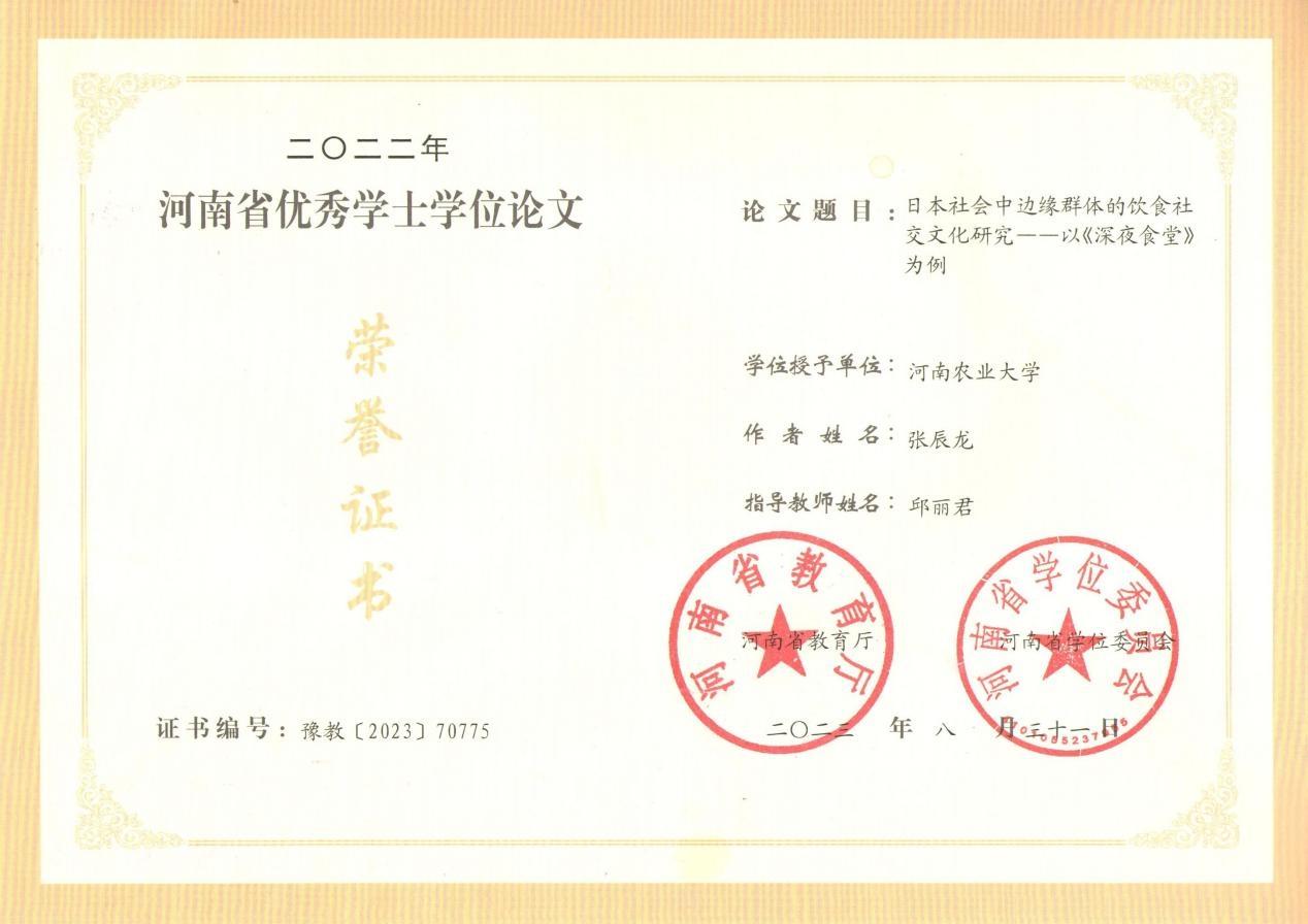 日语专业学生毕业论文获评河南省优秀学士学位论文