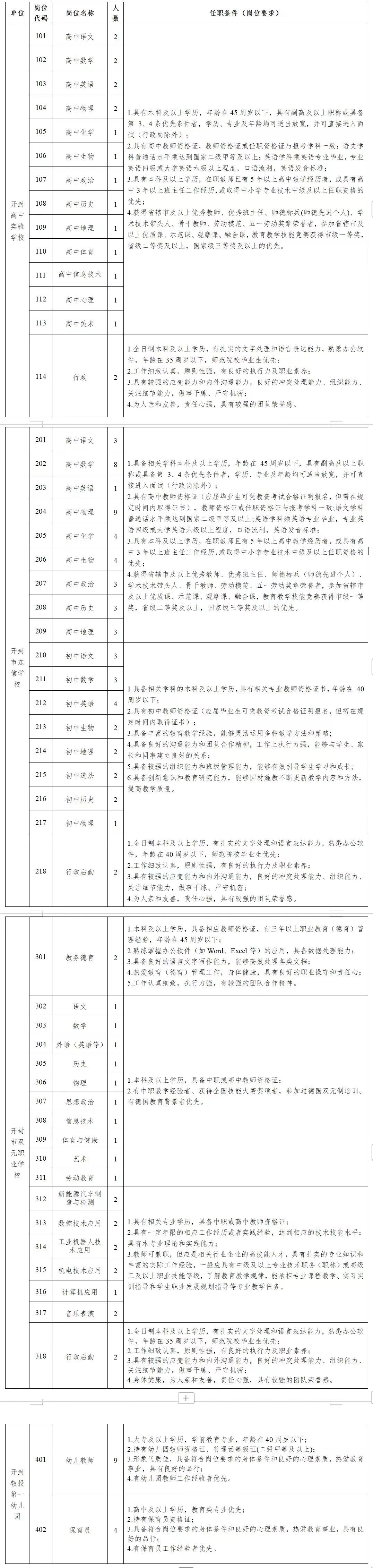 本次面向社会公开招聘共116人:开封高中实验学校19人、开封市东信学校59人、开封双元职业学校25人、开封教投第一幼儿园13人。