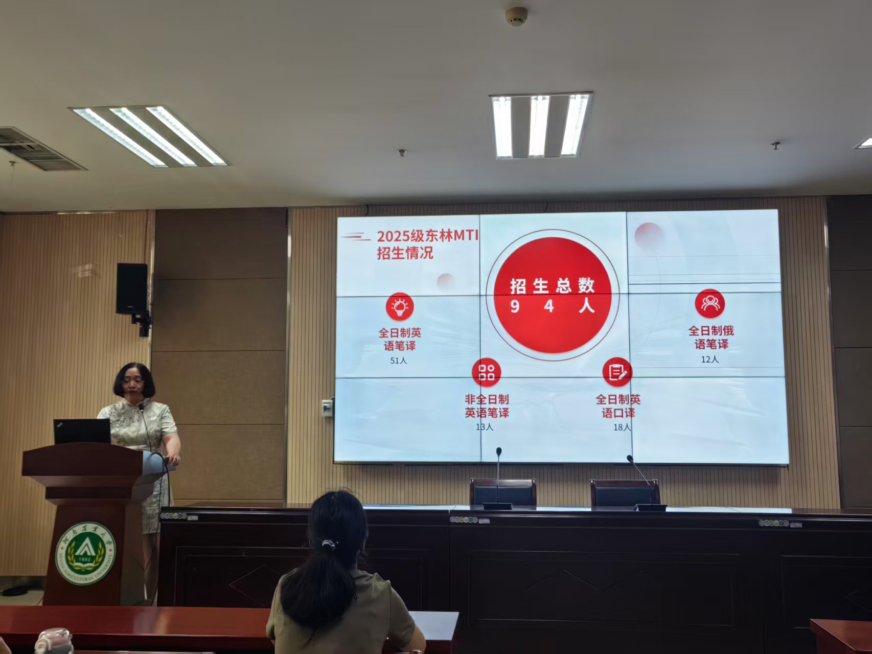 宣讲中,东北林业大学性爱网 齐艳副教授详细介绍外国语言文学一级学科(含英语、日语、俄语语言文学及外国语言学及应用语言学方向 ),以及翻译硕士专业学位授予点(英语笔译、口译,俄语笔译等 ),聚焦英语与翻译相关方向,从学科特色到培养模式,全方位解析升学路径,为同学们答疑解惑,指引专业成长方向。