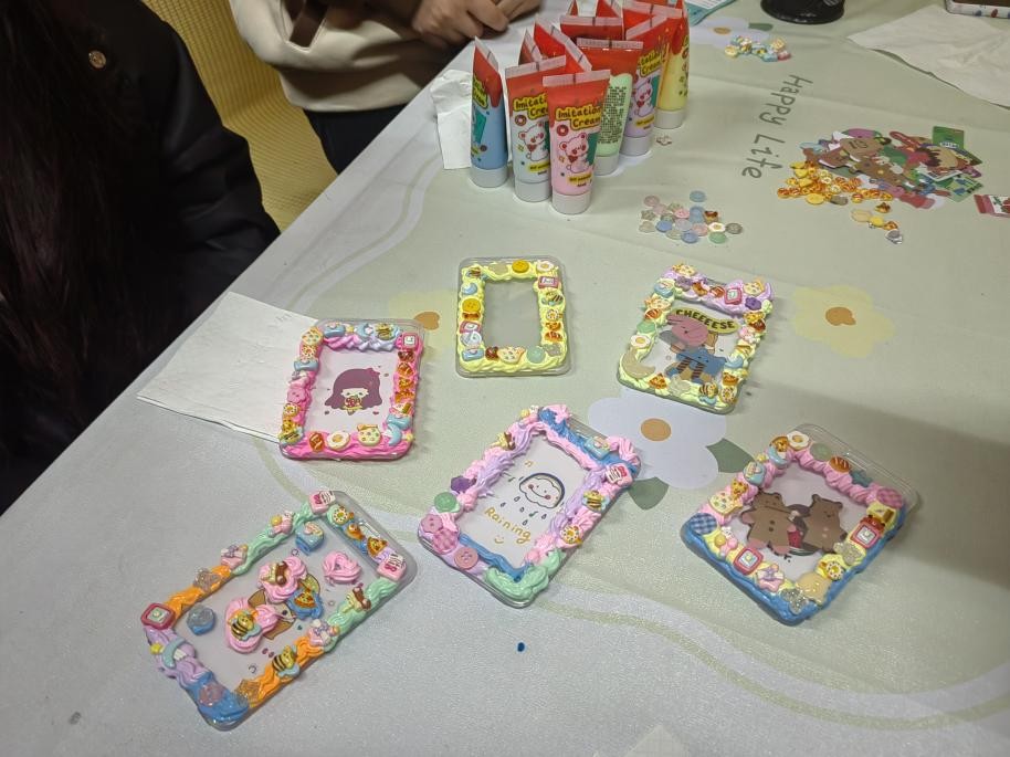 此次心理桌游活动为“卡绘心坊”奶油胶卡套DIY活动,参与人员为23级英语一班同学,并由韧心心理咨询站工作人员组织。活动伊始,工作人员将提前准备好的透明卡套、多色奶油胶套装及百余款迷你装饰配件排列整齐。随后,参与同学在琳琅满目的纽扣、食物、卡通动物形状等装饰配件中精心挑选,或参照示范图样,或即兴构思设计。