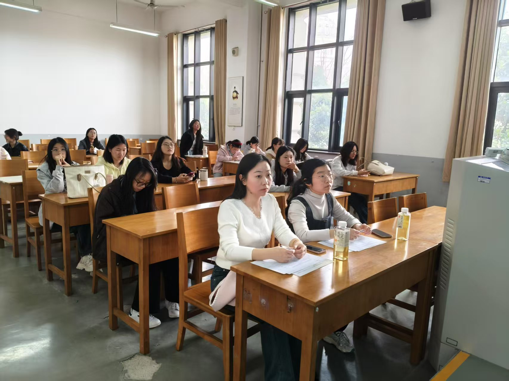 评选现场,候选学生依次进行自我介绍和个人展示,从学业成绩、社会实践等多个维度阐述自己的优势。由学院辅导员武宗励老师和侯彦冰老师担任评委,她们严格依据既定的评选标准,秉持公开公正的态度,对每一位候选人进行认真评估和打分,整个过程透明规范。