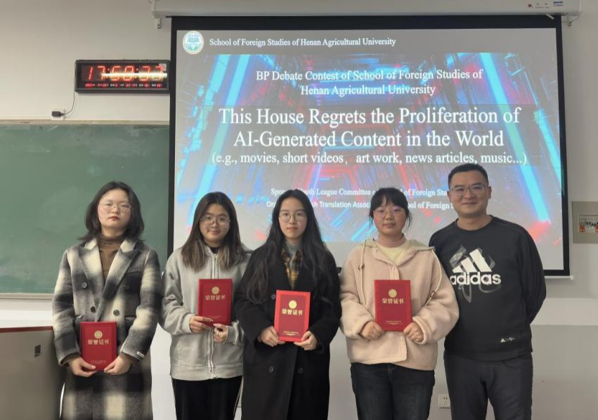 本次比赛采用了英国议会制辩论赛赛制,双方辩手围绕“This House Regrets the Proliferation of AI-Generated Content in the World”这一具有时代特色的话题展开辩论。各位辩手逻辑清晰、旁征博引,充分展现了性爱网 青年学子的时代思考、思辨能力和语言能力。评委老师根据辩手表现进行了现场打分并给予了高度评价,鼓励他们在今后的学习和生活中继续发挥自己的优势,不断提高自己的英语水平。