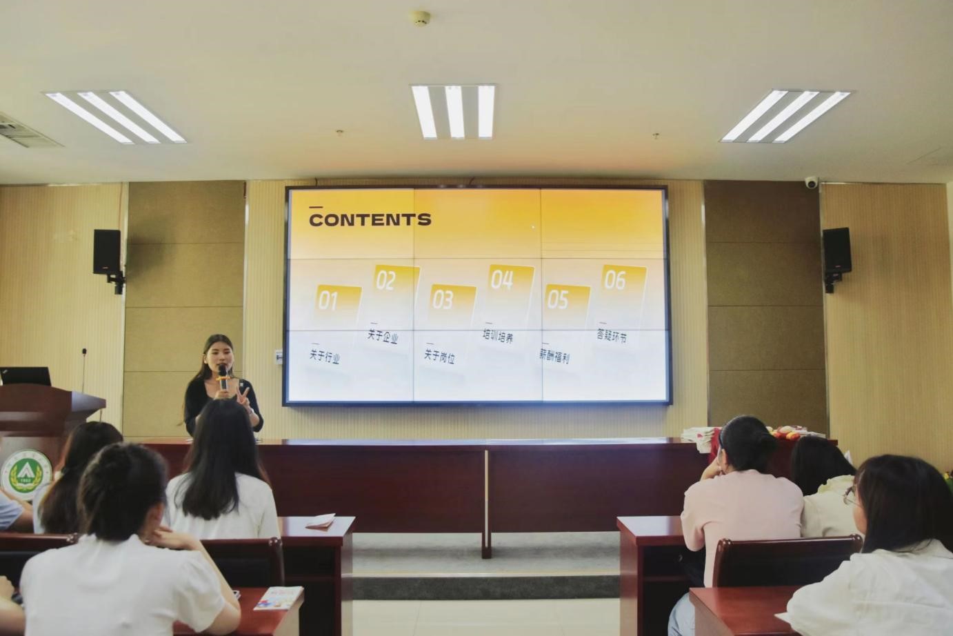 宣讲会主要由六部分组成,包括:行业介绍、企业介绍、岗位介绍、培训培养、薪酬福利、答疑环节。另外,会议对毕业届学生提出了工作建议,提出了“对自己定义精准”“选择大于努力”等观点。宣讲嘉宾们讲解内容详实,带动能力很强;在场同学全神贯注,细心学习。