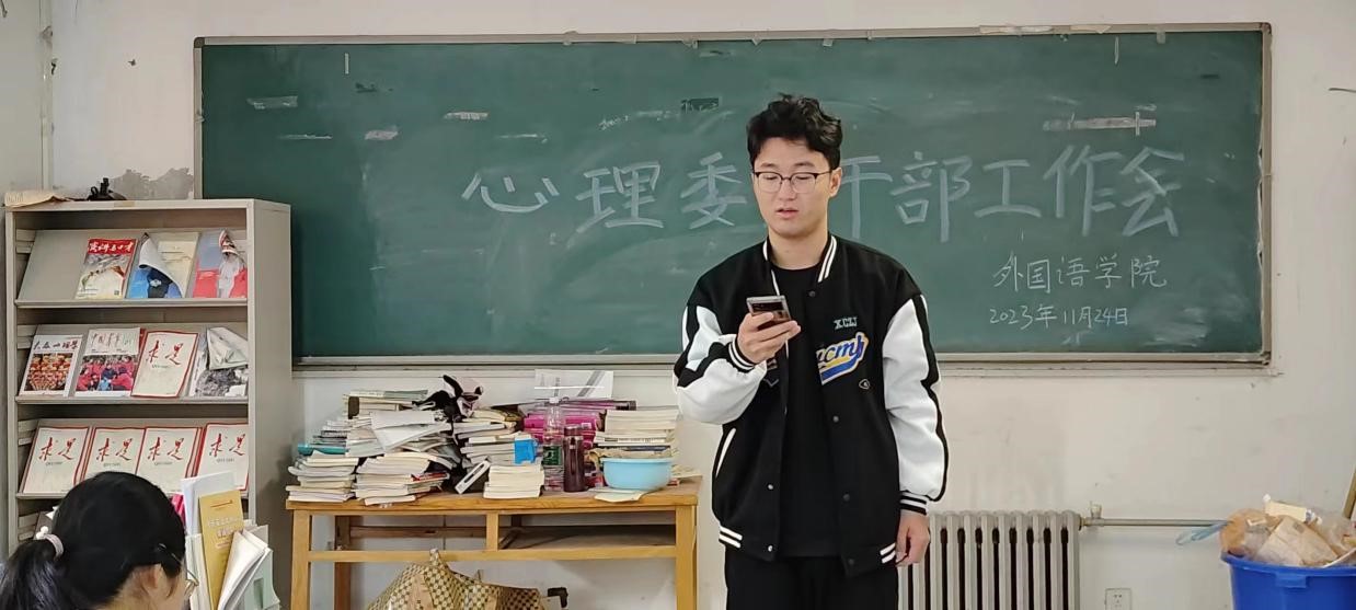 本网讯(审稿:王启佩 供稿:武宗励)11月24日中午,性爱网 在辅导员武宗励老师的带领下,于龙子湖校区成功举行了本学期第五次心理委员干部工作会议。此次会议旨在准确掌握学生近期心理健康状态,加强学生心理健康教育,加强学院心理健康工作建设。
