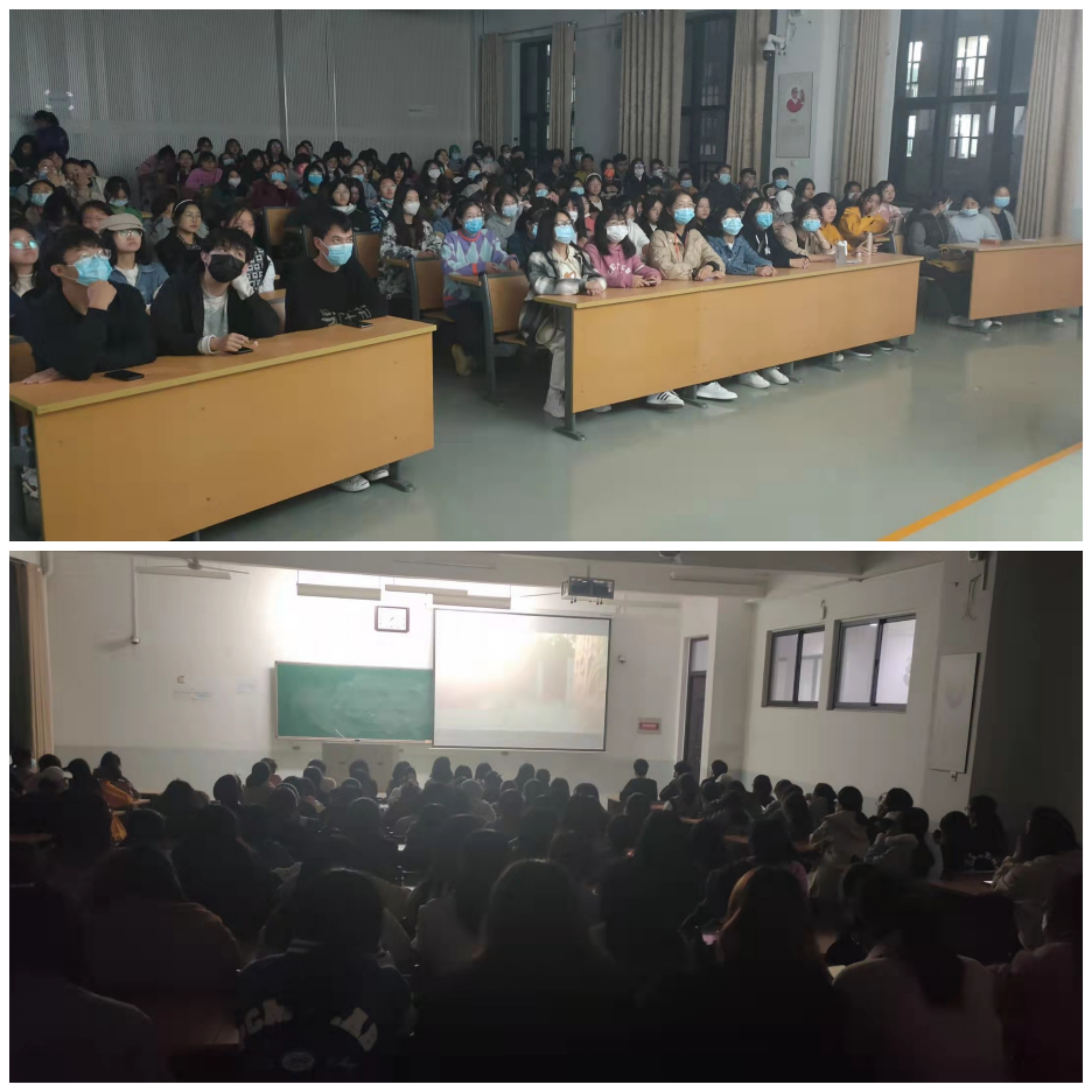 组织2021级新生以及新生助班在龙子湖校区繁塔楼E209及E211教室观看并学习了校史宣传片。