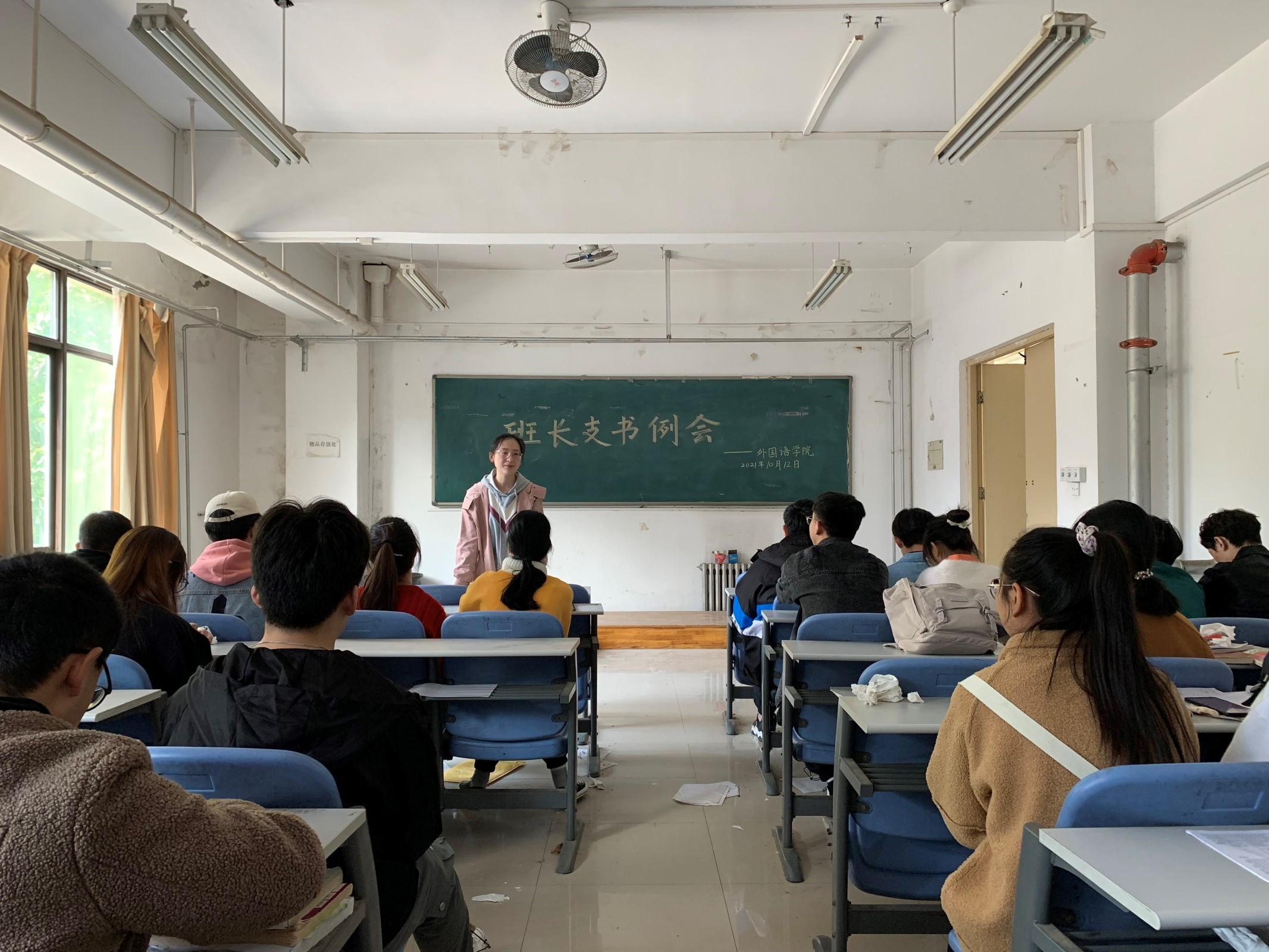 会议伊始,团委负责人传达了有关学院近期教学和卫生工作的通知,并对各部门进行简要的工作部署。随后,各部门负责人进行工作汇报,以便及时解决新学期各项学习和生活问题。学生会生保部表示寝室卫生工具和公共设施的更换和修复问题后期会进行统一的收集上报;学科部鼓励同学们积极参加外研社等英语比赛,加强实践学习;宣传部提倡开展优创主题班会,增强新班级的活跃性和团结性。接着,陈桃对各部门负责人的发言进行总结,同时敦促同学们尽快调整状态,适应新的学习环境,认真学习和备考。最后,她提醒大家在校期间仍要坚持健康上报,坚持非必要不外出的原则,确保自身的健康和安全。