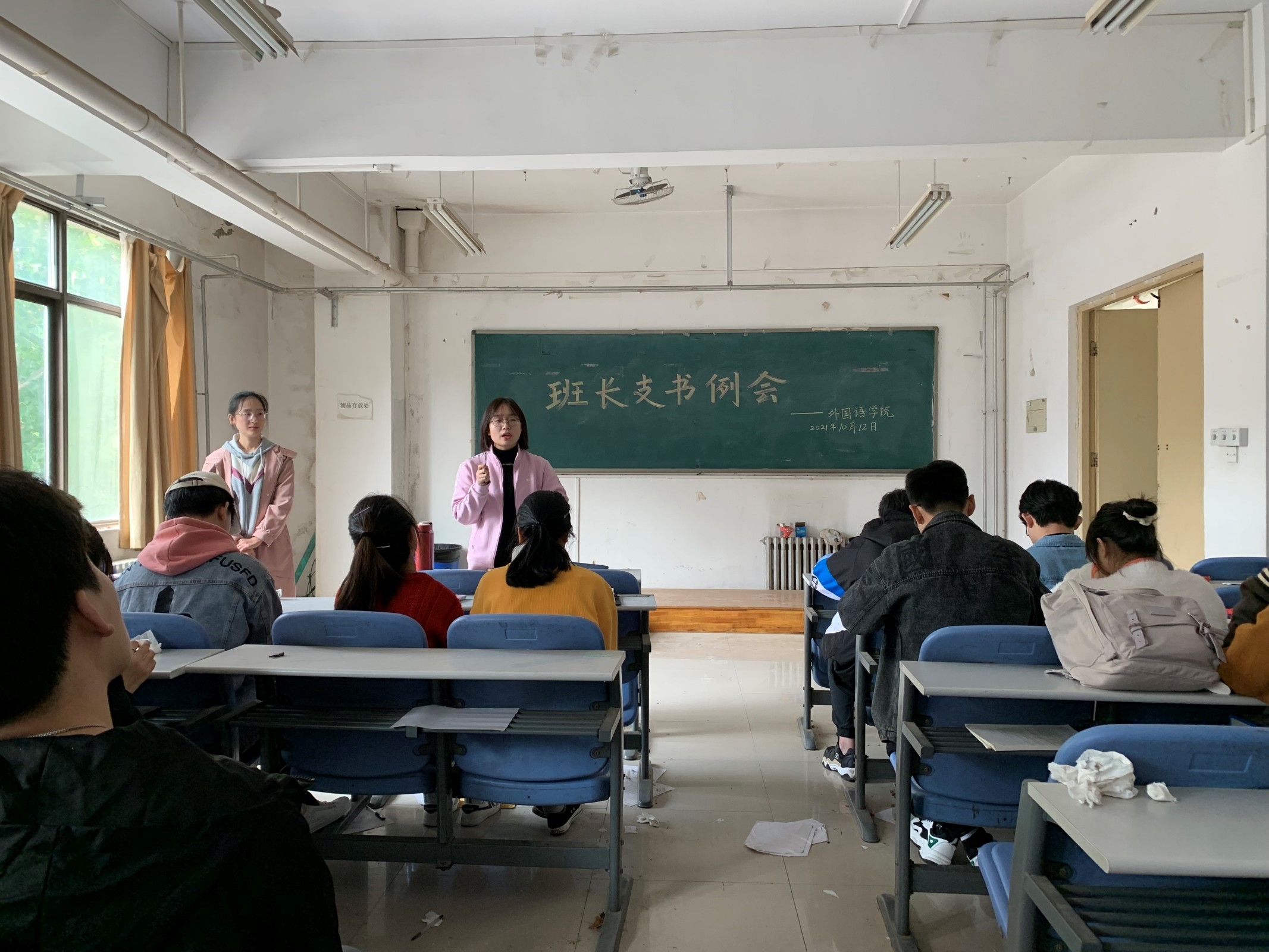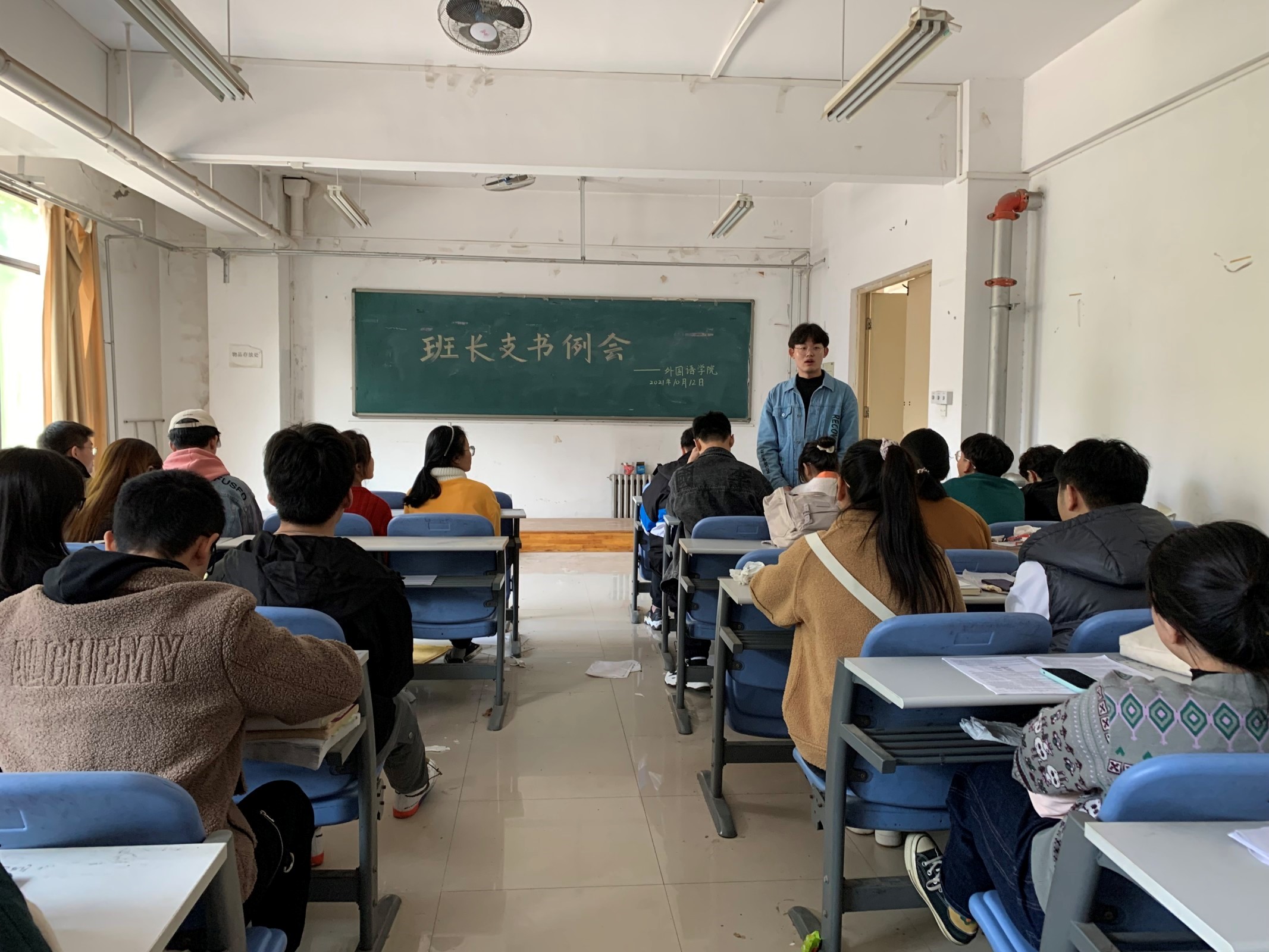 于龙子湖校区海棠园202自习室召开了本学期第一次班长支书例会。团委副书记陈桃、冯超、辅导员穆君怡携主要学生干部和各班班长支书参加此次例会。