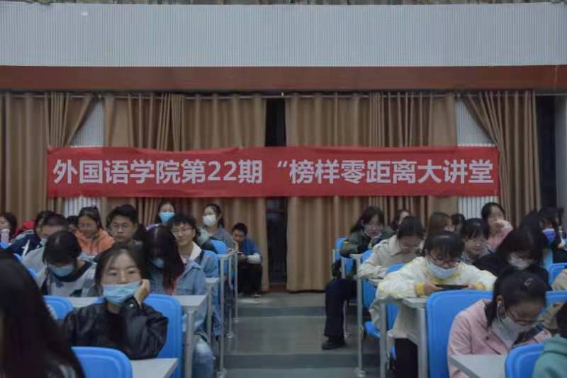 于10月21日晚7点在繁塔楼BC间大教室四举办了第二十二期“榜样零距离”大讲堂。21级全体学生及新生志愿者参加此次活动。活动由19级日语一班景一博主持。