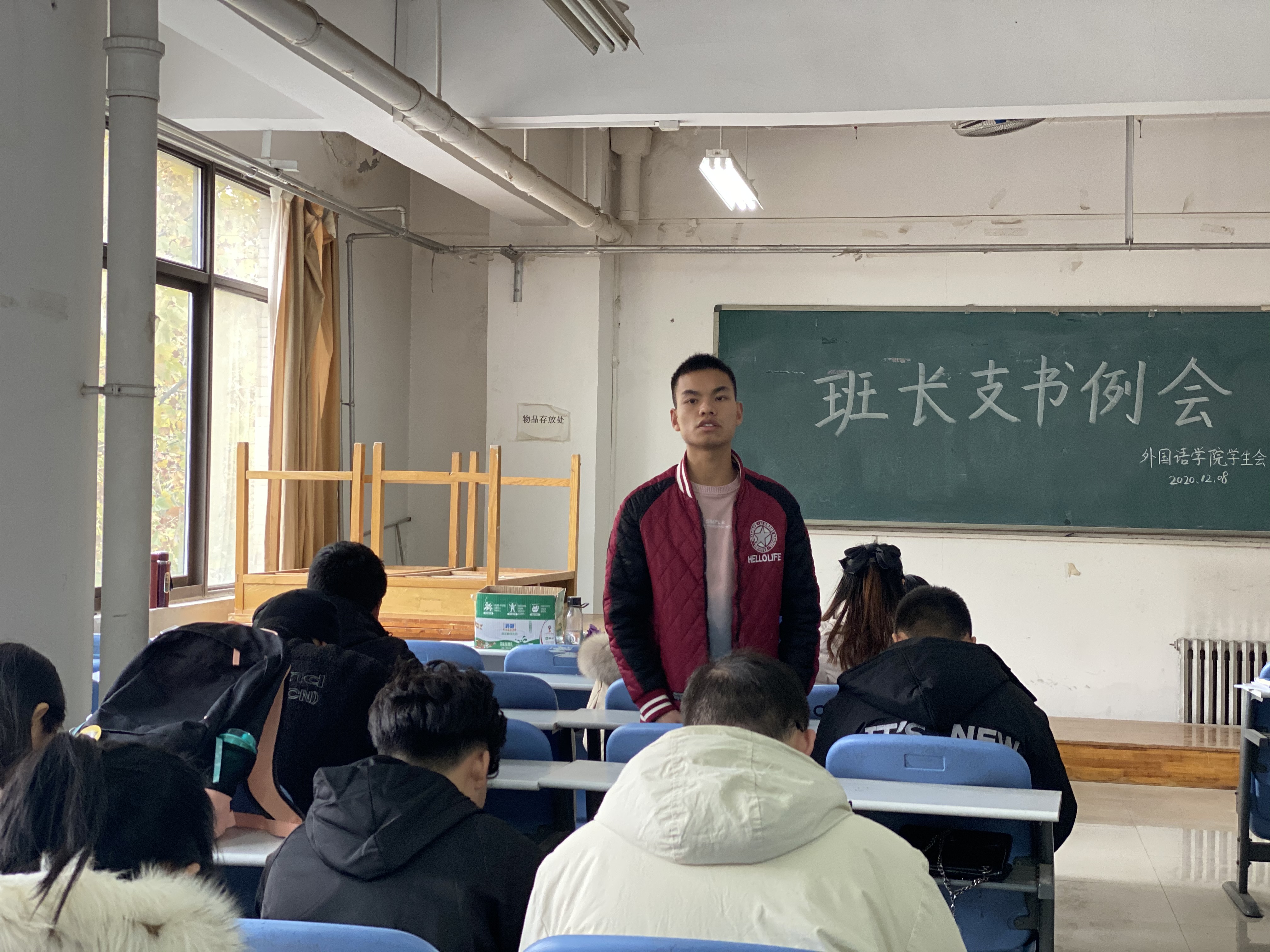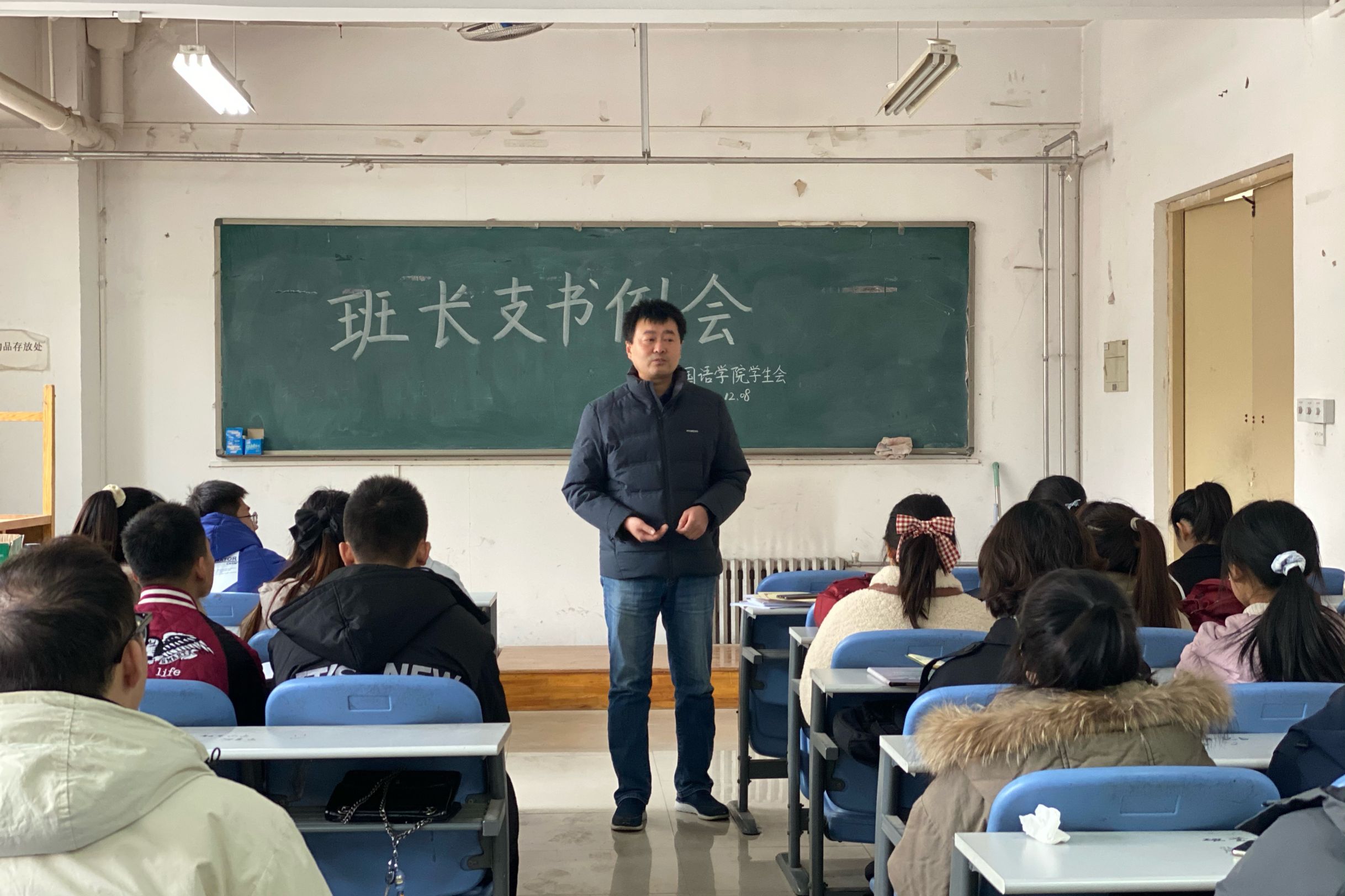 于龙子湖校区海棠园202自习室召开了本学期第十一次班长支书例会。团委书记李沛携主要学生干部和各班班长支书参加此次例会。