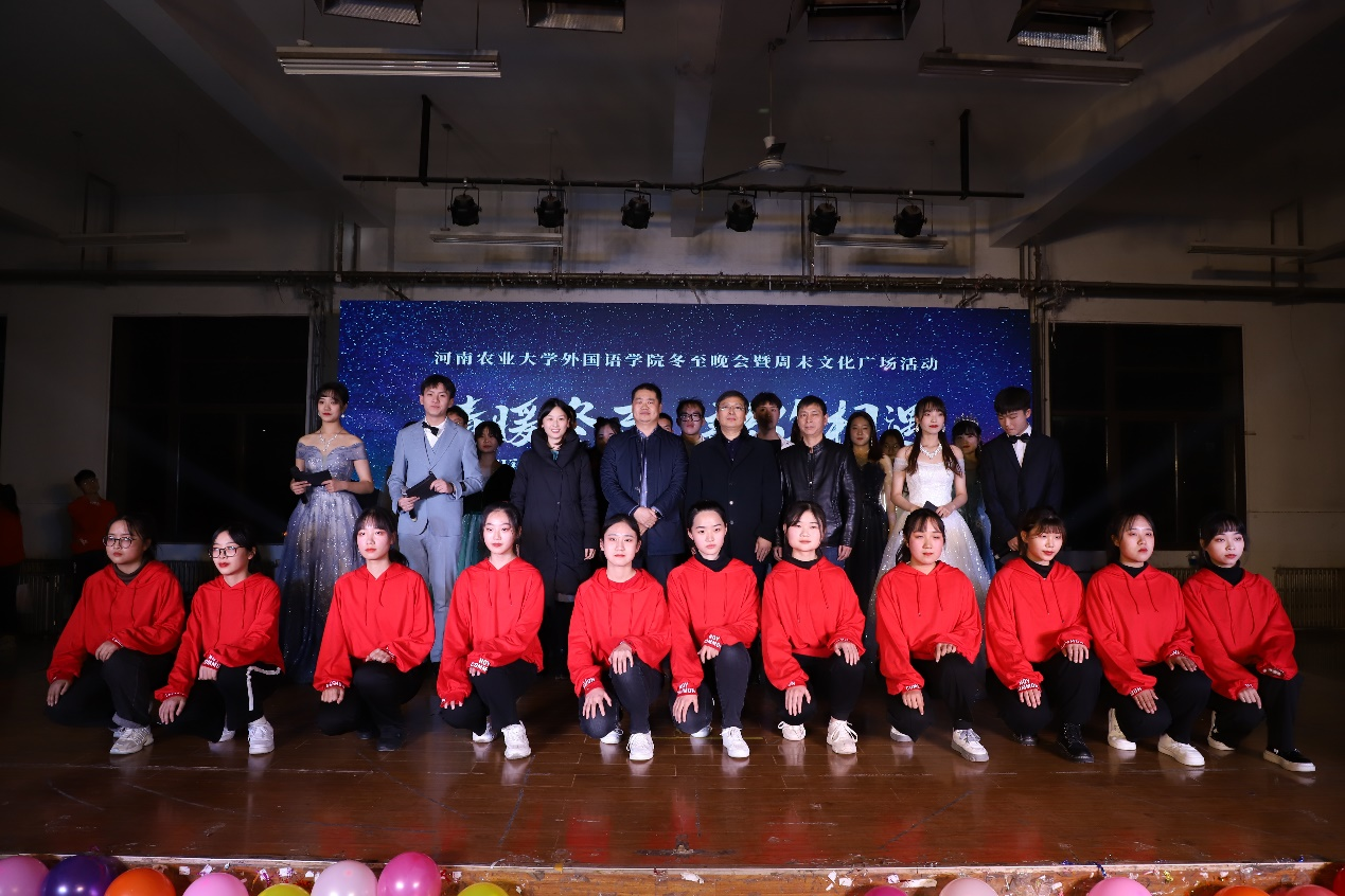 于龙子湖校区一餐厅三楼举办了冬至联欢晚会暨周末文化广场活动。院长张俊杰,党委副书记王启佩,副院长张卫东,团委副书记陈桃、冯超,辅导员牛烁,以及全体20级新生共同欣赏了这场精彩绝伦的视听盛宴。