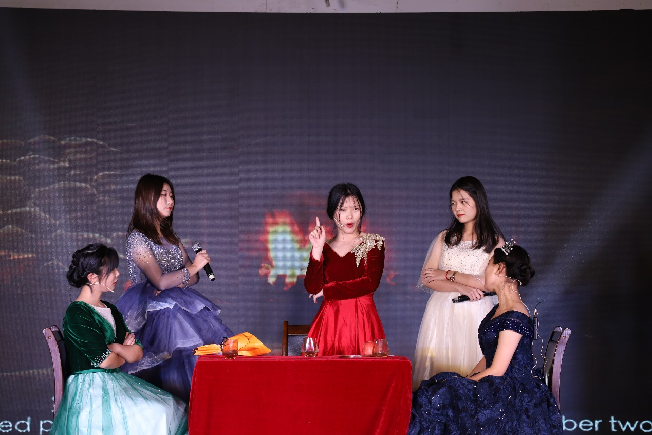 晚会伊始,院长张俊杰代表学院为此次晚会致辞。随后校电乐团表演的《猛犸》正式拉开晚会的帷幕,热情奔放的音乐节奏与绚丽斑斓的灯光相得益彰,瞬间点燃了晚会的气氛;张辰龙、张孝延用日语重新演绎下经典歌曲《四面楚歌》,赋予经典旋律以新的活力和生命,别有一番风味;情景剧《笑看风云》用幽默风趣的演绎手法,让同学们会心一笑的同时,亦让其感受到奋斗精神的内涵与珍贵。院中国舞队带来的舞蹈《清平乐》,队员们细碎的舞步,轻云般的慢移,旋风般的疾转,舞出了旋律里的离合悲欢,也引领着在场观众梦回长安,重返盛唐;英文音乐剧《后妈茶话会》在紧张的节奏中拉开帷幕,表演者们凭借流利的口语、生动夸张的动作将角色的性格特点展现的淋漓尽致。作为压轴节目的T台秀,动感随音乐而现,活力随脚步而出。优雅的台步,各具特色的定点动作,使在场观众的欢呼声一浪高过一浪,更将晚会的气氛再次推向高潮。最后,晚会在英译协会婉转悠扬的合唱《My Love》中圆满落幕 。