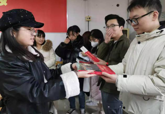 党建办宣传部于12月1日中午在龙子湖校区海棠园三楼党建办公室开展了《习近平与大学生朋友们》赠书活动,此次活动面向学院全体班级,各班班长支书作为代表领取书籍。