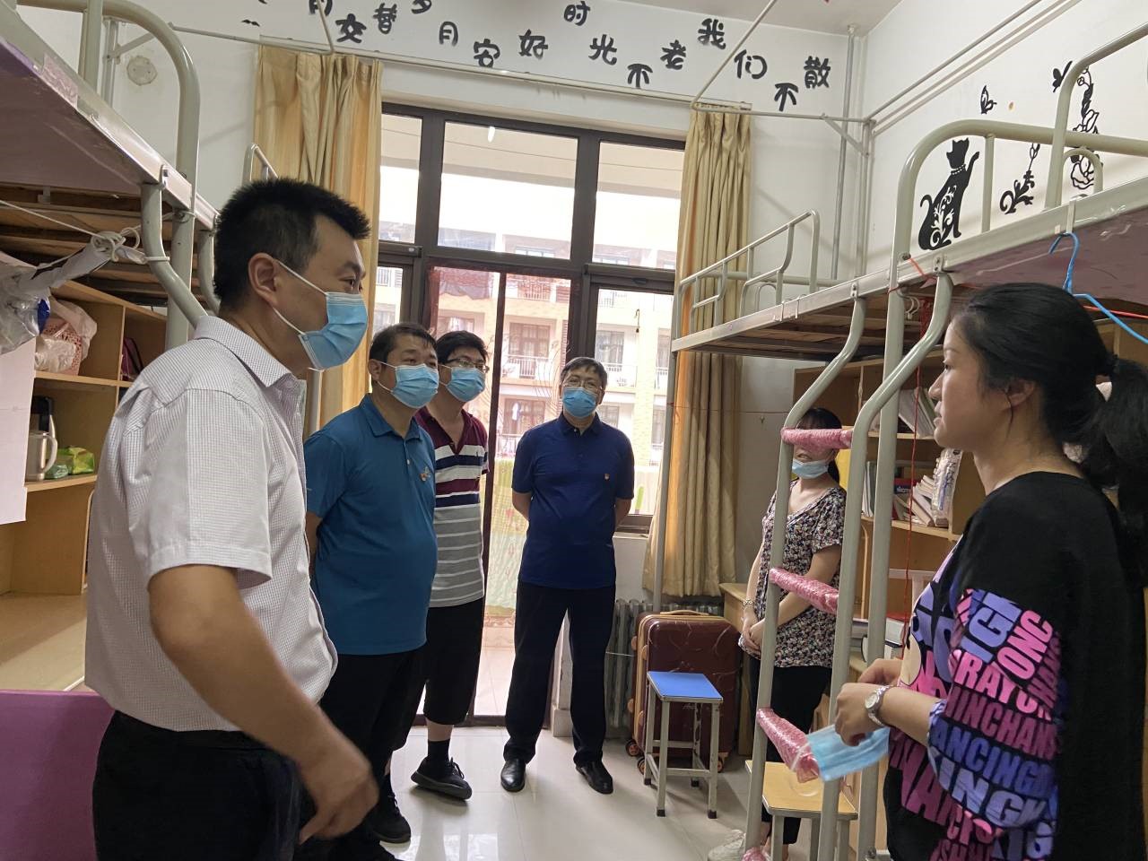 院领导和返校学生进行了亲切的交流。对于低年级学生,学院领导询问了他们在家学习情况,并对他们提出殷切希望,鼓励其在新学年努力学习,不断提高、充实自己,始终保持对学习和学校的新鲜感,为社会发展做出自己的贡献;而对于高年级学生,学院领导与其沟通了未来发展规划并提出宝贵意见。期间,他们认真了解了17级学生备考研究生情况及复习进展,并为准备就业的学生提出了建设性的意见和建议。此外,学院领导还细心了解宿舍热水供应、被褥晾晒等情况,给予返校学生各方面的理解、支持和帮助。