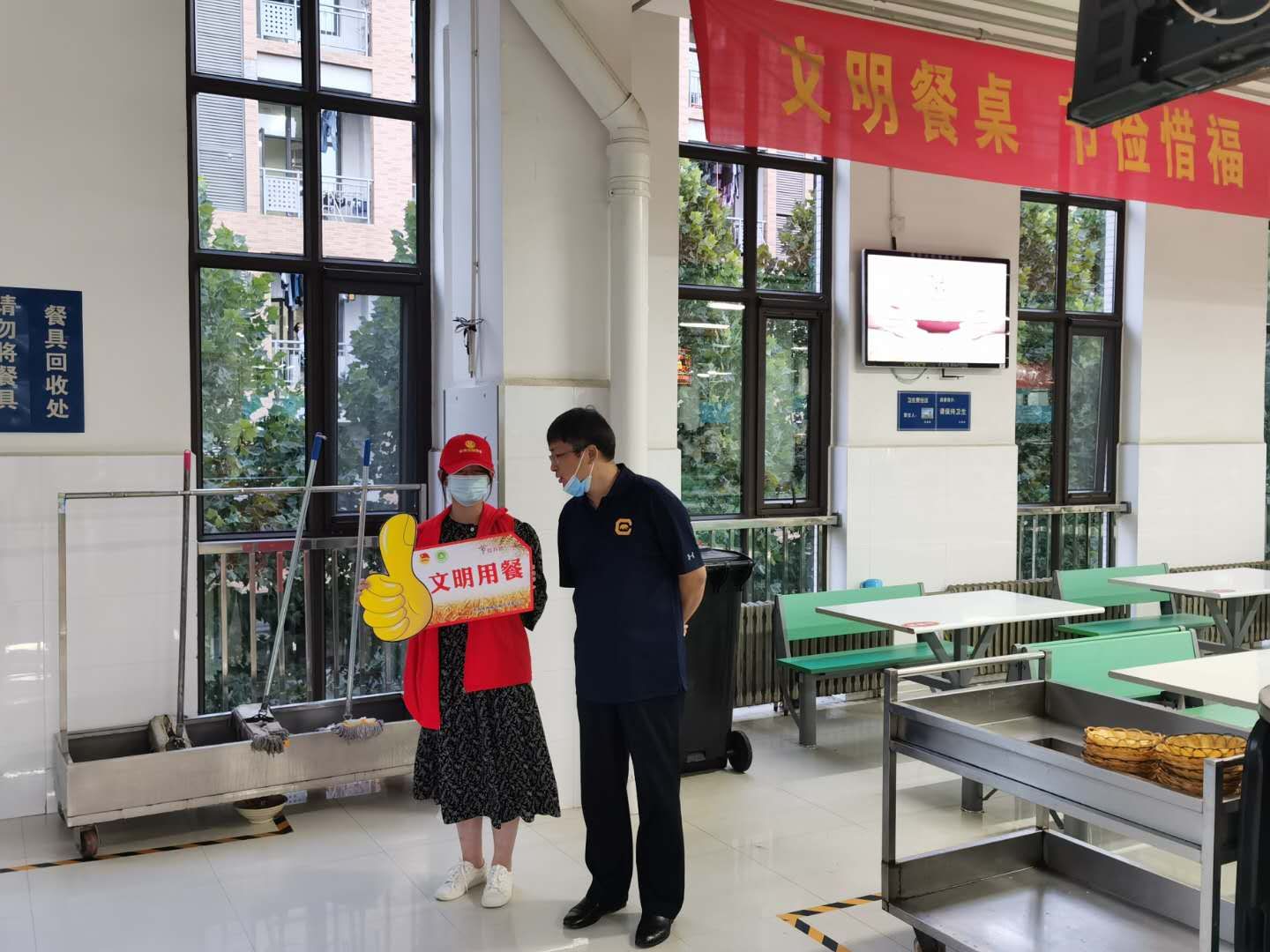 师生制止餐饮浪费,践行文明用餐,共同为创建节约型校园、节约型社会贡献力量。