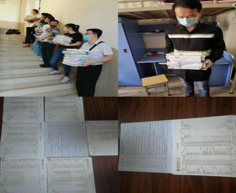 学院党委副书记周晓和辅导员班主任一起收集需要给学生邮寄的学习资料