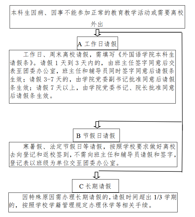 2.通过短信、电话等形式请假,经班主任、年级辅导员同意之后,必须当天及时落实请假手续,过期无效;